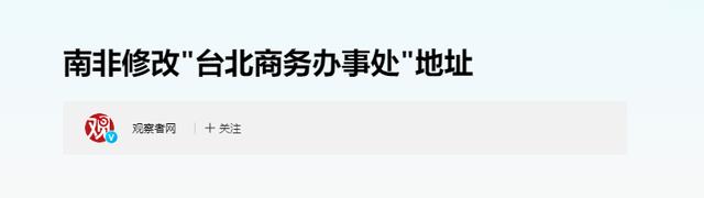 原文记载于观察者网2025年05月16日关于:南非修改“台北商务办事处”地址