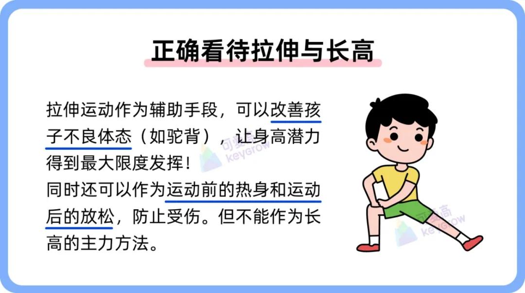 通过拉伸让孩子暂时“长高”一点点,是因为纠正了不良姿势、伸展了脊柱间隙,一旦恢复原有姿势,高度就会回去。它无法影响决定身高的核心——下肢长骨的长度。