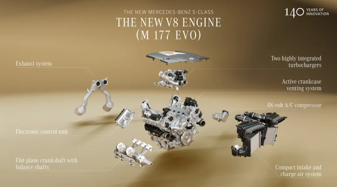 动力层面,会引入4.0T V8、3.0T V6以及3.0T插混版本。其中,S580首发搭载M177 Evo V8发动机,匹配48V轻混系统,最大马力537匹。S480与S500则搭载M256 Evo V6发动机,同样配备48V轻混。S480最大马力381匹,S500为449匹,并支持短时间的“超增压”,可额外提升40牛·米扭矩。另外的两款插混车型均采用3.0T V6发动机并匹配电机,发动机与电机功率相比现款均有所提升。S450e综合最大马力489匹,S580e则提升到了612匹。