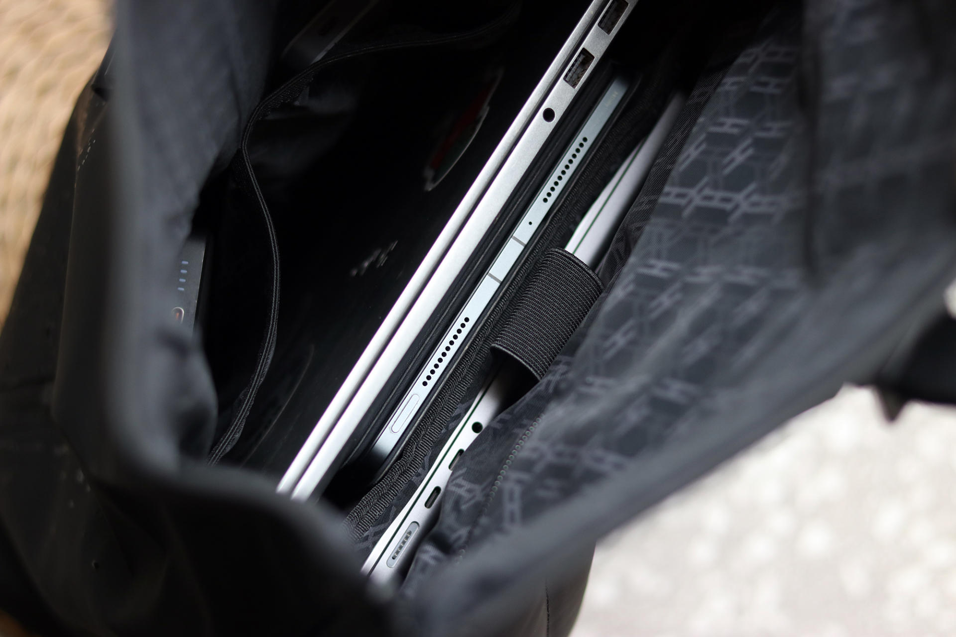没想到有一天被华为的背包给种草了,科技厂商的背包是一个比一个卷。 最近背的这款华为轻尚双肩包,很有型,符合我的气质哈哈。而且这个是高密度PU材质,可以防水,打湿之后一擦就干净了。像我长期装的都是电脑手机相机,对防水就很看重。 整体看起来不大,但用了顶部卷包的设计,如果有需要可以展开拓展空间,储物能力很强。而且,即使在不展开的情况下,也可以轻松放下16英寸的笔记本。内部也设计了多层收纳,日常出行的笔记本、平板都可以规整收纳。 外侧还有两个小包,装个备用机啥的取放都方便。