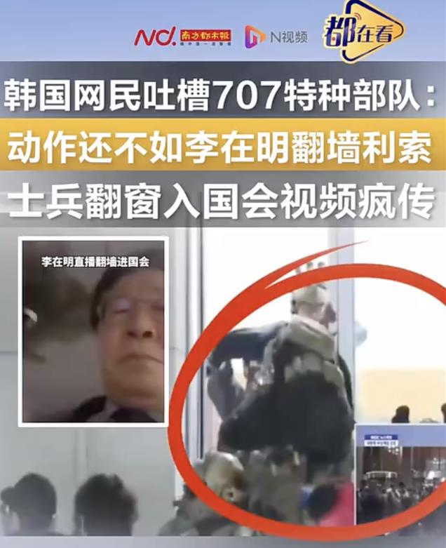 还有,他们尝试冲击韩国国会主楼正门时,有一位女政客还敢于上去抢枪,之后两个707的成员上去,才能跟她“势均力敌”。