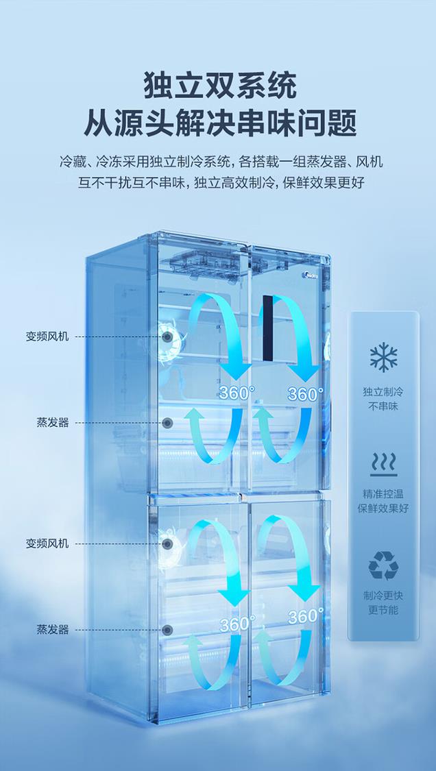 美的532是此价位最值得购买的非零嵌机型,它的容量为506L,相比美的471提升了不少,而且是法式四门。
