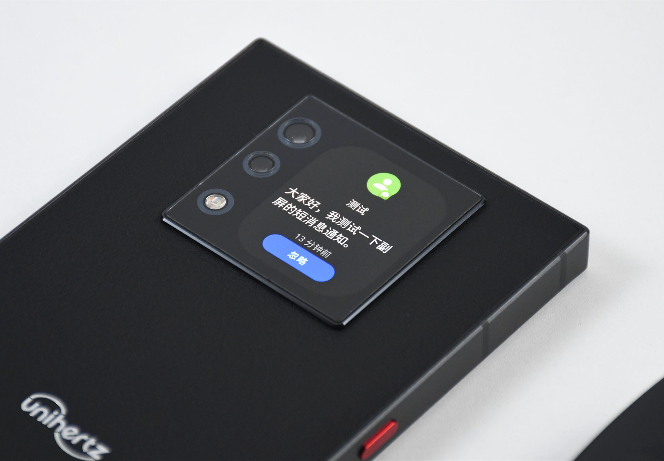 Titan 2一共有两块屏幕,正面采用了一块4.5英寸的方屏,分辨率为1440*1440,同时正面还搭载了一颗3200万像素的摄像头。