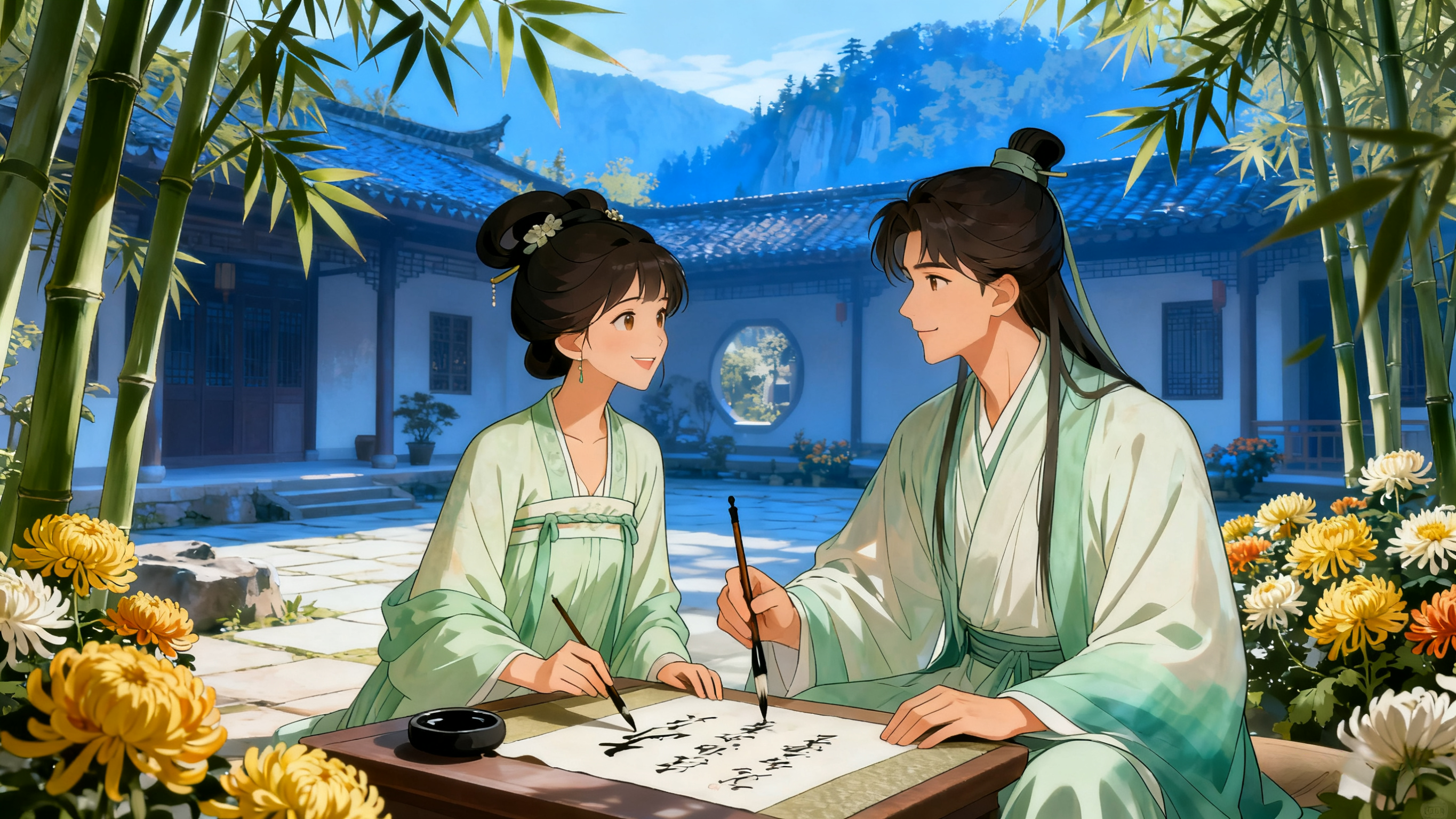 这十年,是他人生中最安稳的时光。他在蓝田辋川置宅,她陪他种竹养菊;他作画题诗,她研墨添香。没有豪奢,却有烟火气里的诗意。