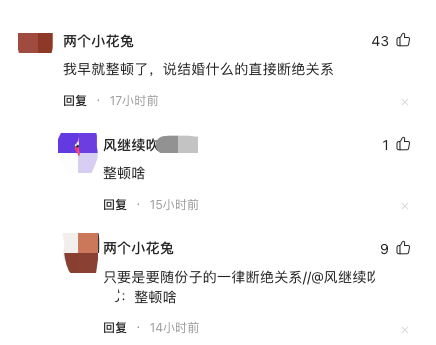 有网友评论,“我早就整顿了,说结婚什么的直接断绝关系”。
