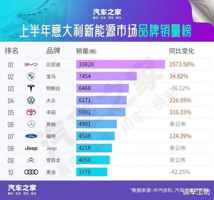 欧洲市场在汽车行业里被视作竞争最为激烈、挑战最大的核心阵地,其市场教育成熟度高,各大传统汽车品牌在此根深蒂固、势力庞大。但在今年上半年,比亚迪仍在欧洲市场频获突破,在英法德意西五大欧洲头部市场中表现亮眼,其中比亚迪在意大利、西班牙均取得了新能源销量第一。比亚迪在西班牙的上半年销量突破万辆,增速高达756%。在意大利,比亚迪上半年销量达10828台,同比增长2573.58%,宋PLUS DM-i等车型持续热销,深受消费者喜爱。