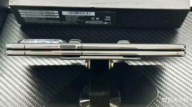 折叠后的直板机。拆包装取真机,小编拿到手的这台MateX3是二手机,使用年代有点长,机身痕迹明显,功能正常。在折叠状态,它像加厚版的直板机,正面是6.4英寸的屏幕,2504*1080分辨率,精度尚可,且正面一样有800w像素的居中挖孔屏设计,自拍与视频无障碍。屏幕棱角圆润,r角大,单手握持手感一般,差异在于机身厚度达到11.08mm,且圆润的中框叠加后,更加压手,重量达到241克,妥妥的半斤重量。