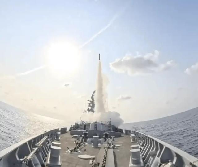 为了展现武力威慑能力,在海军“苏拉特”号驱逐舰上试射了一枚射程70公里的中程敌对空导弹。