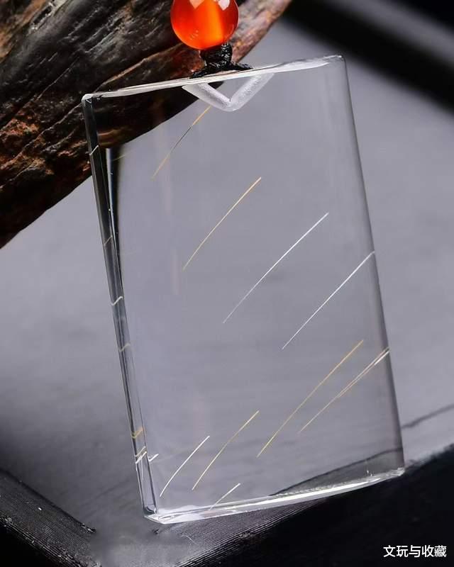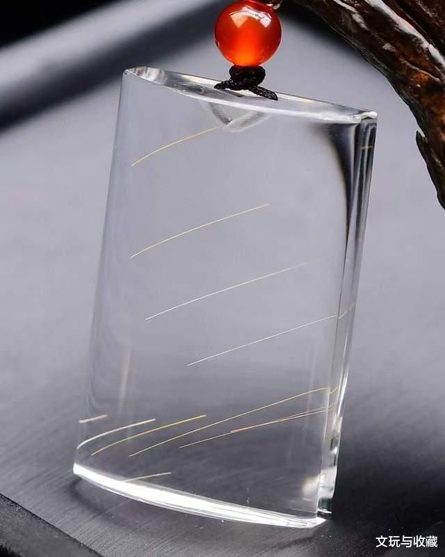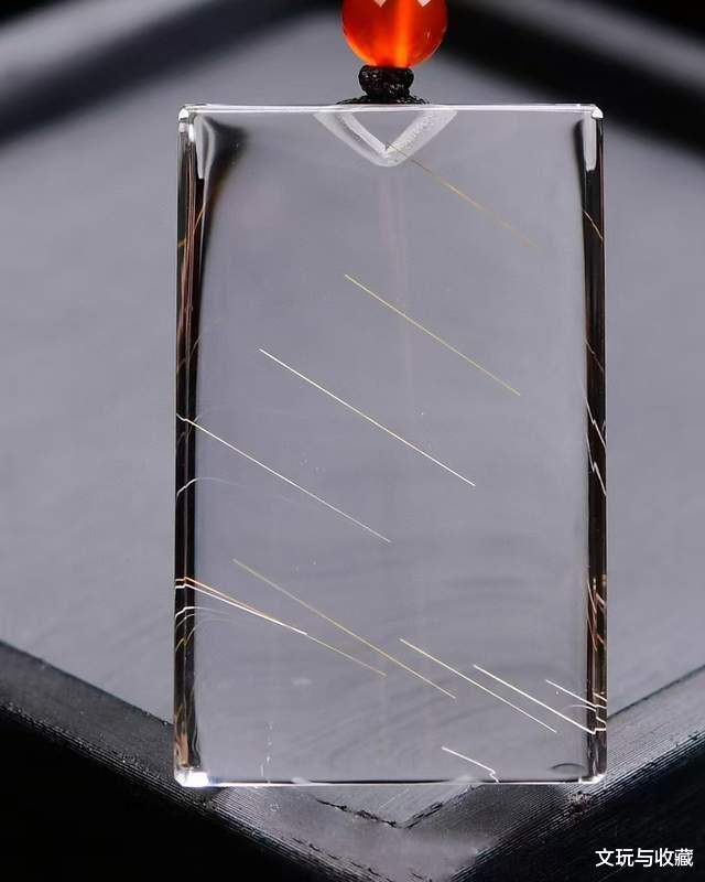 今天与大家分享两件白水晶无事牌,第一件作品中,几缕金发晶以优雅的斜线贯穿牌体,宛如夜空中划过的流星。