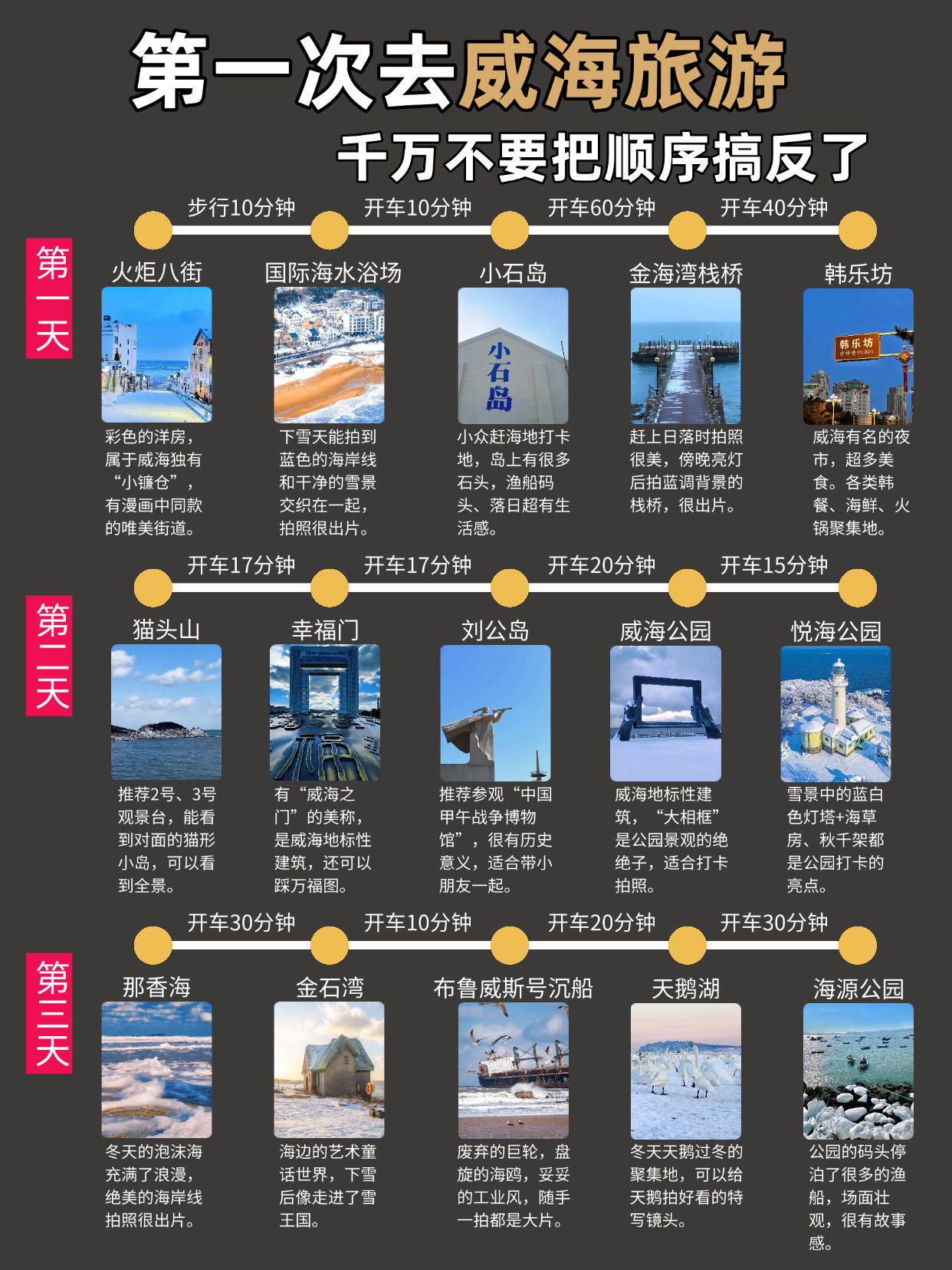 复盘📝一下我的威海三天两晚的快乐行程👻!冬天的威海真的是美呆了😱~已经替宝子们试过了☝️,提前做好攻略📝,跟着路线走🗺️,行程充实又舒适🛏️,想去的宝子赶紧码住🐎~