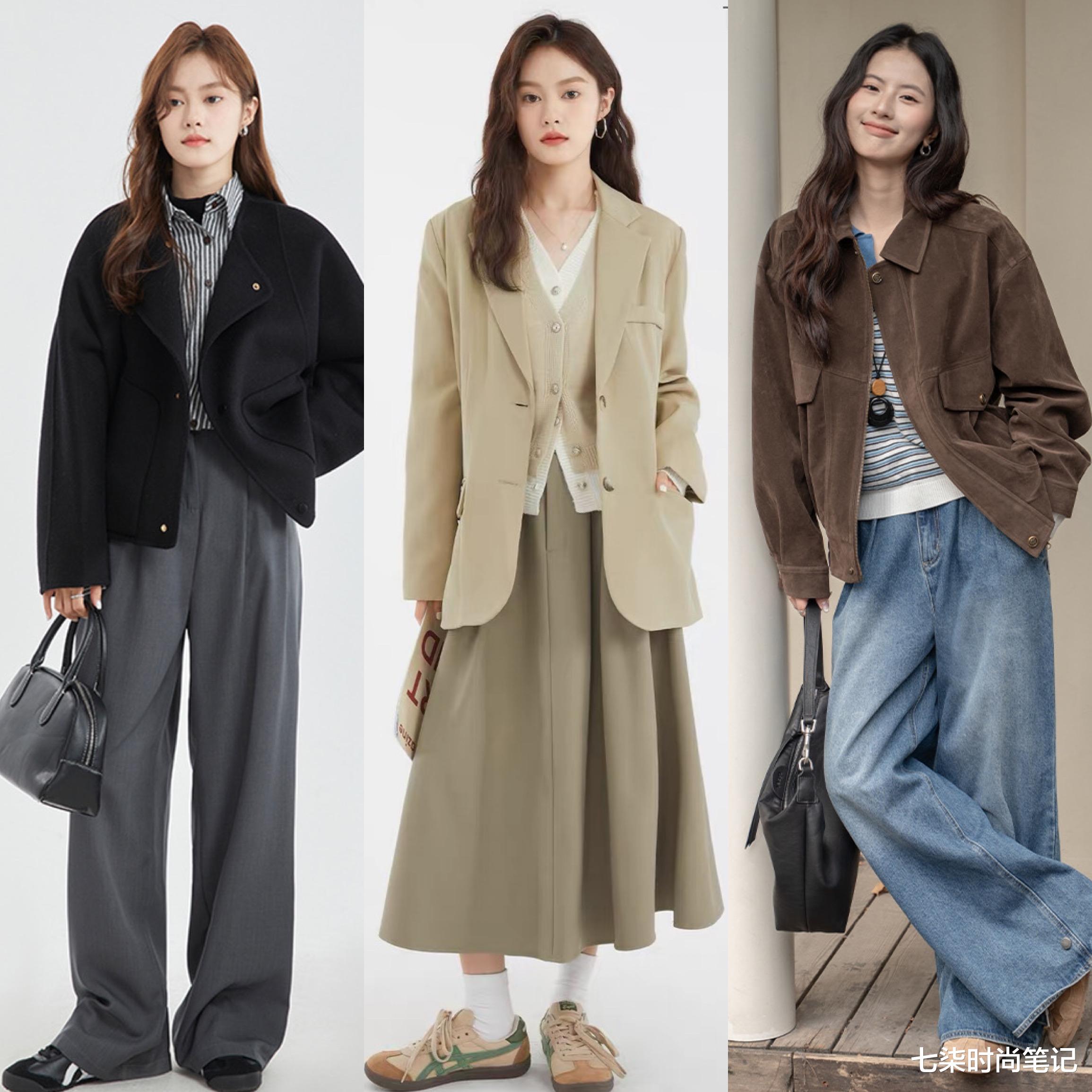 利落的短款,既能应对秋天多变的天气,又能修饰出黄金比例。下面搭配一条走路带风的阔腿裤,潇洒帅气又藏肉。