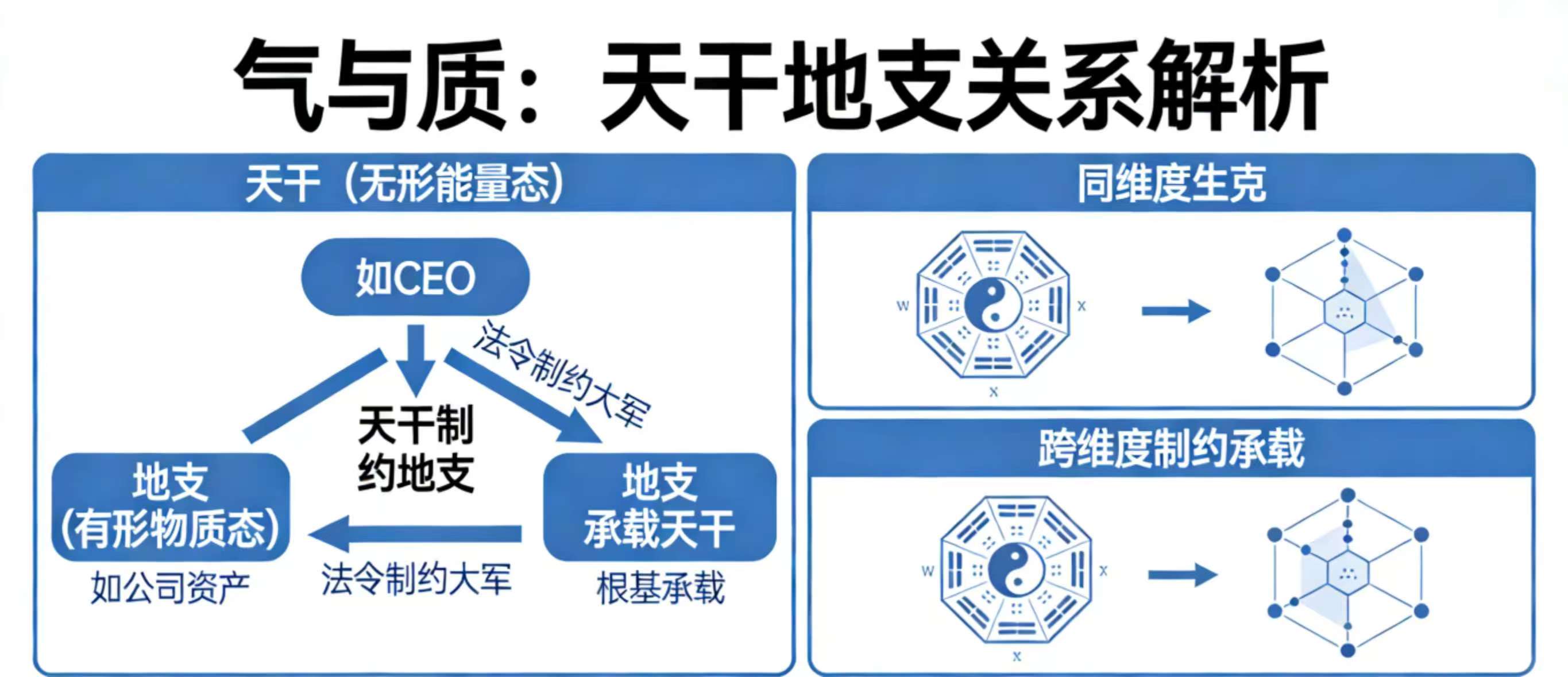 因为,解决问题,必须深入到问题的同一维度。 你想要解决地上的麻烦(地支),就不要总指望天上飘着的云彩(天干)能帮你什么大忙,除非它能降下实实在在的雨水(地支同五行)。这正是“制约”与“承载”带给我们的终极启示。
