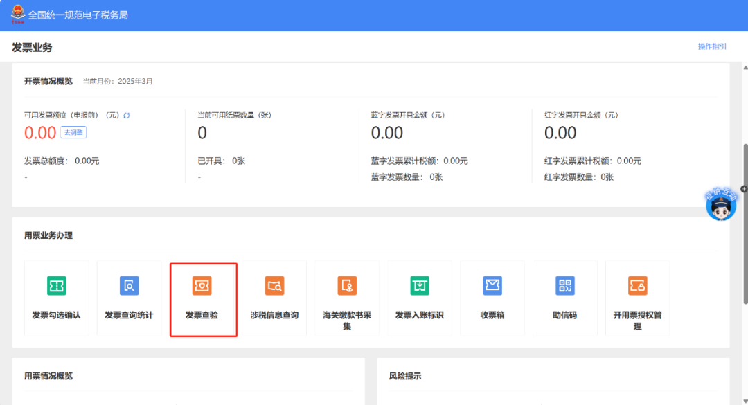 2. 单张查验:自动进入【发票查验】页面的“单张查验”页签,按要求录入发票相关查询条件,点击【查验】按钮,查询结果区会显示对应的发票信息。