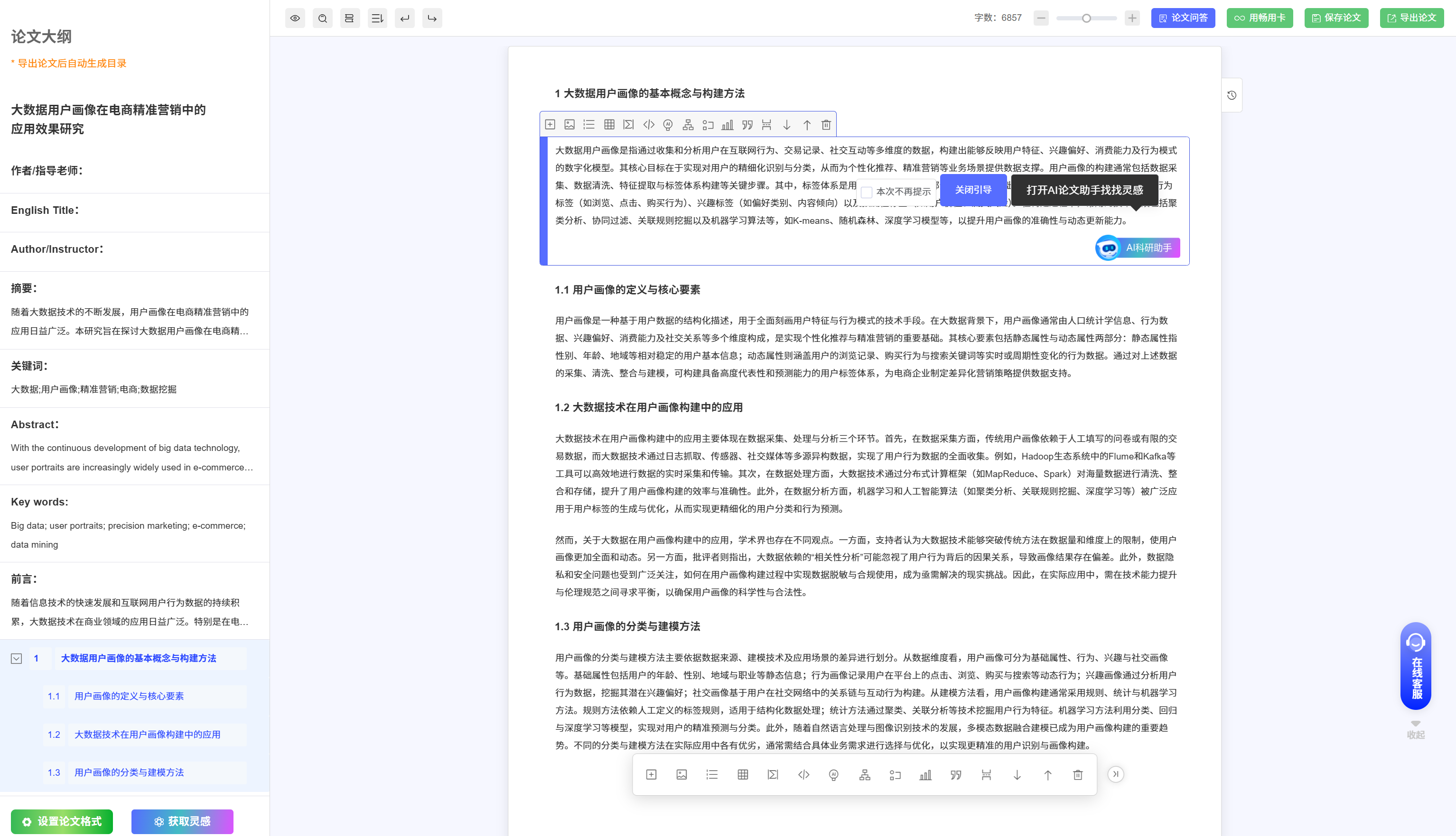 它最大的优势不是某一个单点功能特别炸,而是:整条论文正文写作链路都比较顺。
