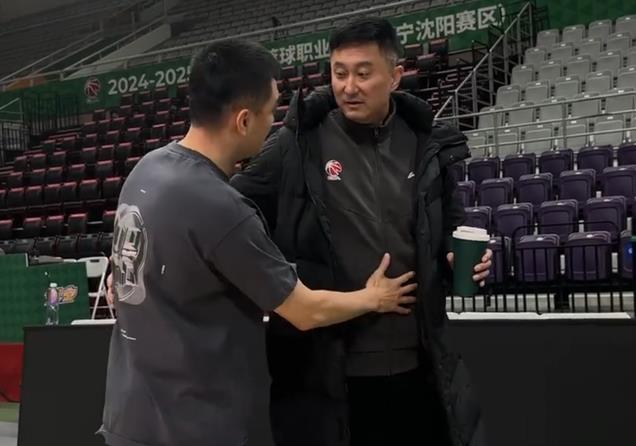 本来最值得期待的比赛就是辽篮主场对阵广东队,上午双方进行了踩场训练。杨鸣和杜锋一上来寒暄起来,他们亲切交流,杨指导拍着杜指导肚子还不忘调侃一番。