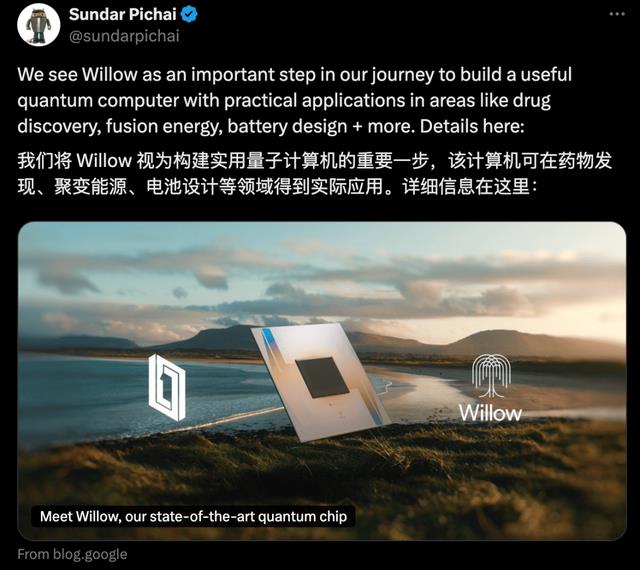 谷歌新研发的量子芯片“Willow”是该公司在量子计算领域的一项重要成就。通过改进量子比特的稳定性,“Willow”不仅提升了计算效率,还在生产成本上实现了显著降低。这一进展意味着谷歌在量子计算机的实用化道路上迈出了坚实的一步。