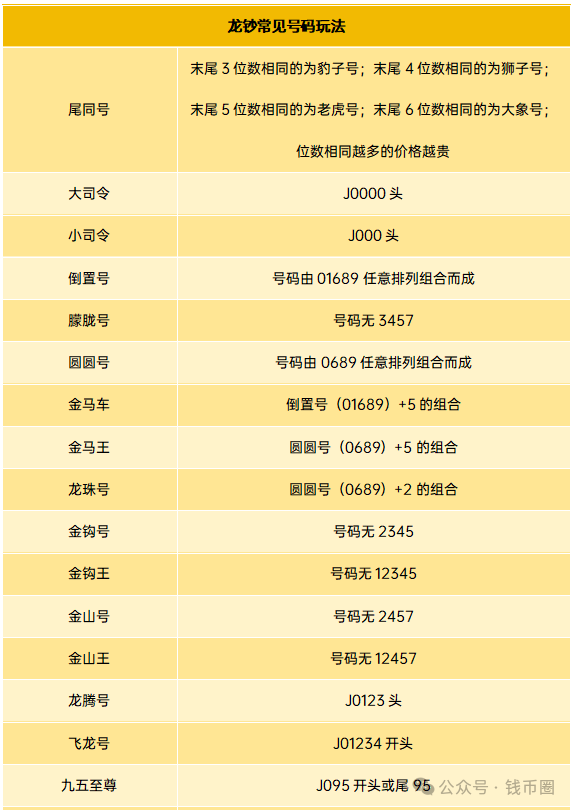 目前大宗市场上,天马王的价格在160元上下;飞马王的求购价在140元左右;如果你手里也有龙钞,可以拿出来对照下号码看看。和普通的尾同号不一样,现在的号码玩法太多,而且眼花缭乱的,很多藏友根本记不住。我们给大家整理了表格,建议大家可以保存下来,这样以后交易也比较方便。