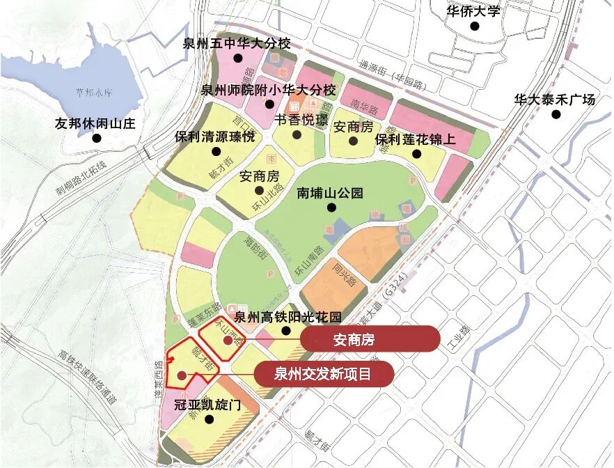 教育:南埔山片区内落地泉州师院附属小学华大分校、泉州五中华大分校,为市区学校联合办学模式,目前在建中。