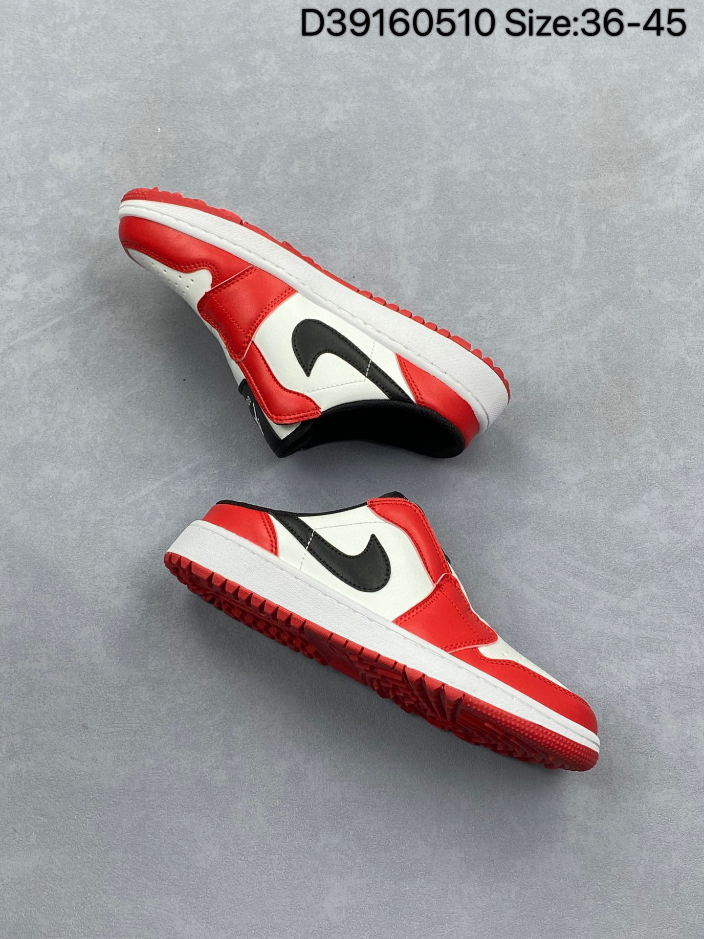 Air Jordan 1 Low Mule Golf "Chicago" 低帮 高尔夫一脚蹬半托 芝加哥 AJ1 乔丹1代 aj1 乔1 低邦 高尔夫一脚蹬半托 白红黑 乔丹篮球鞋系列 整体高尔夫和穆勒鞋的特质相结合,采用红色和白色搭配,鞋身两侧Swoosh Logo采用黑色点缀,十分复古百搭;鞋舌Jumpman Logo及Golf字样辅以白色呈现,鞋面采用皮革材质打造,带来不俗质感。鞋垫处印有飞人和GOLF Logo,彰显鞋款身份;同时本次取消了鞋带设计,更加容易穿脱,最后带有锯齿造型的外底收尾,完善整双鞋设计。