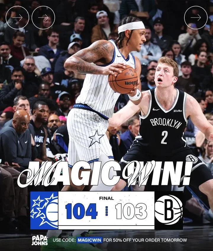 北京时间1月8日,NBA常规赛:魔术104-103加时击败篮网。这场关注度不高,但最后时刻的准绝杀和反绝杀登上热搜。加时还剩3.6秒,篮网8号秀杰明命中大心脏三分,篮网领先2分。魔术2.1秒边线球,班凯罗压哨三分反绝杀!
