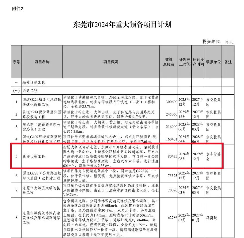 此外,包括新槎大桥和江龙大桥改扩建也安排了费用,尤其是新槎大桥最令人期待。