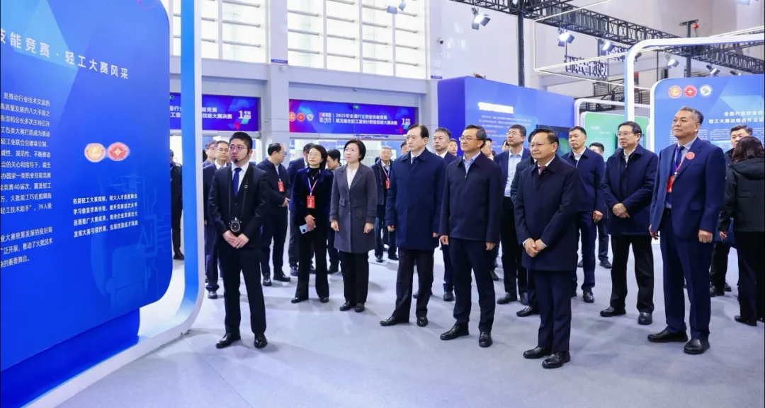 开幕式开始前,颜清辉、张崇和、刘忻一行参观了大赛相关展区。在历届轻工大赛风采展示区,颜清辉高度评价了轻工大赛将设计和制作深度融合的创新举措和产学研协同创新的显著成果。张崇和表示,轻工大赛始终坚持以服务人民美好生活为宗旨,推动优秀作品向市场产品转化,促进设计创意与实用价值双向提升。宁波轻工业展区重点展示代表性企业与典型案例,彰显宁波制造业扎实的根基与前瞻的布局,呈现了轻工业在促进就业、带动产业链发展、增强地方经济活力等方面的突出贡献。