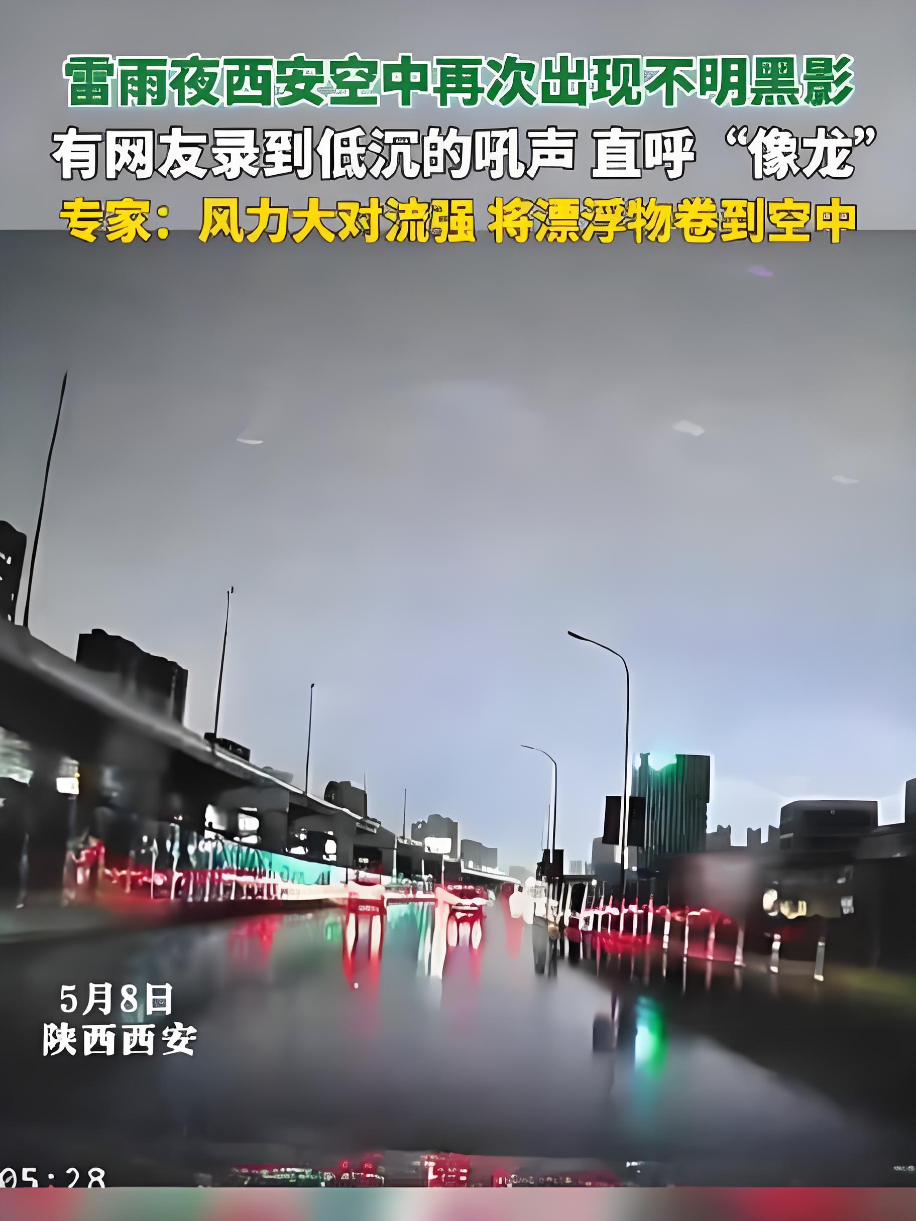 5月8日夜幕降临之际,古城西安遭遇了一场突如其来的猛烈雷雨。在这场电闪雷鸣的暴雨中,多位目击者拍摄到天空中出现了数条神秘的黑影,这些物体以诡异的姿态盘旋俯冲,其形态酷似中国传说中的龙形生物,迅速引发全网热议。