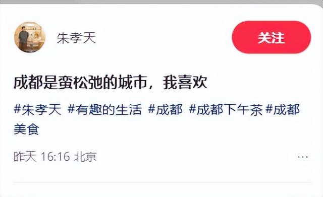 5月7日朱孝天发布了一条视频,当时的他独自一个人就跑到成都喝茶体验美食。