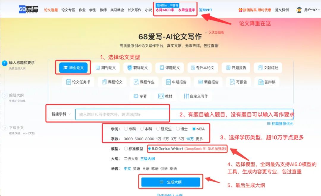 68爱写AI对查重率要求极高,内嵌专项低重复率算法进行强力ai论文降重,68爱写AI实测能将查重率控制在10%以下的极低水平,由此提供的一键降重配套服务和语义重组功能,也使AI写论文的内容符合学术写作规范,68爱写AI为写作者筑牢合规防线,是极具竞争力的ai一键生成论文软件。