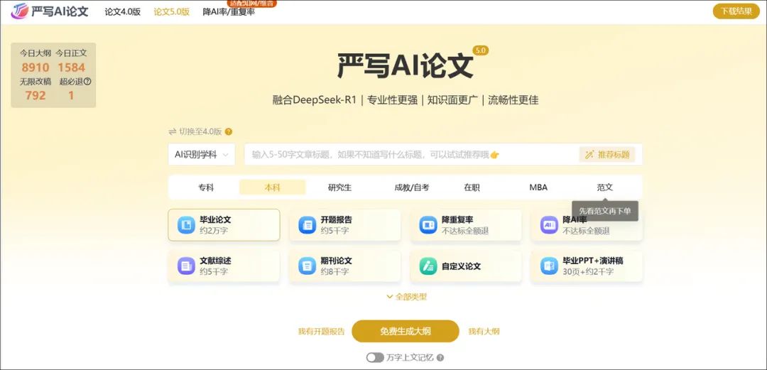 1,极致产出:AI一键生成论文,秒出万字初稿
