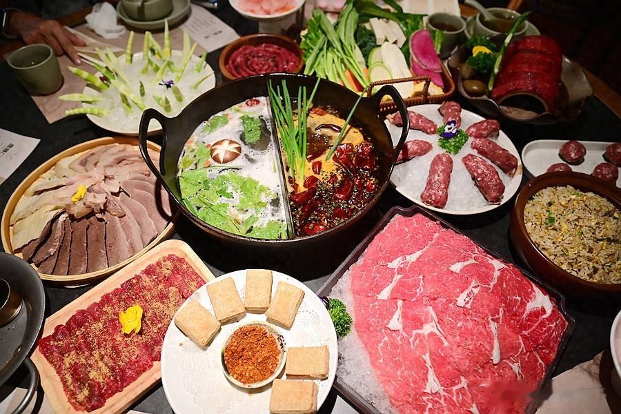 跷脚牛肉是四川乐山名菜,是四川非物质文化遗产,盡膳口福·草本跷脚牛肉火锅采用火锅形式,药膳牛肉汤底以二十余种中药材调配,
