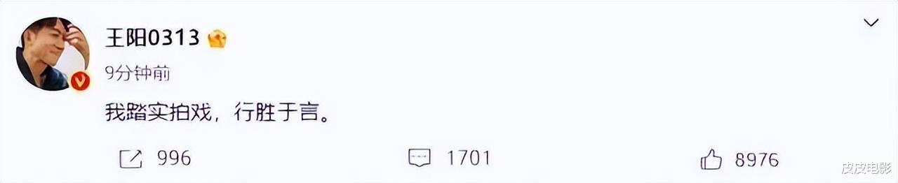 王阳百般委屈之下,只得简单发了个声明:我踏实拍戏,行胜于言。