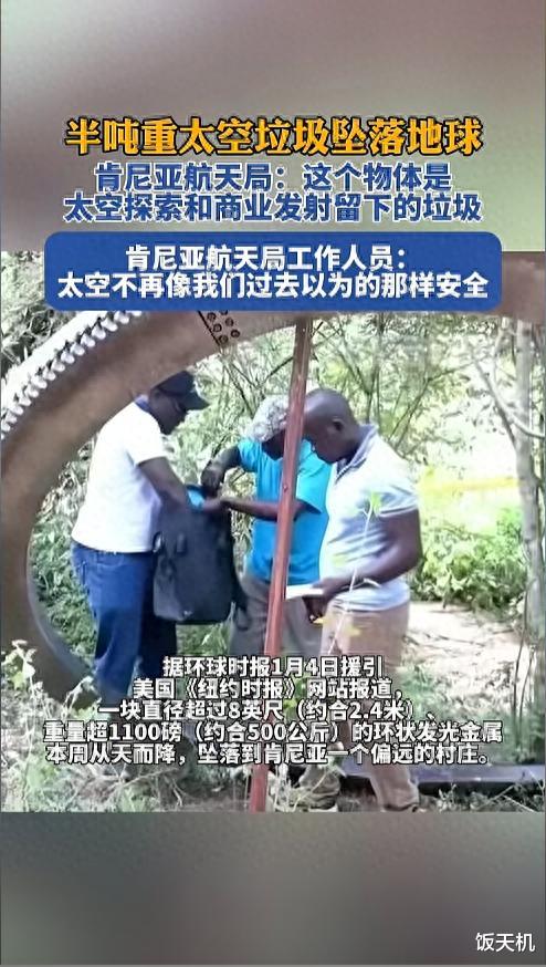 一块半吨重的太空垃圾,“哐当”一下坠落在肯尼亚的一个小村庄里,把当地居民吓得不轻。