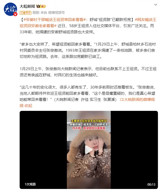 这次王祖贤入驻社交平台爆红,舒城老家的村民也跟着开心,张俊傲说,现在村里变化太大了,三十多年前大家还推着板车出门,现在路修好了,日子也越过越红火,就是真心希望王祖贤能回来看看,看看她当年修的路,看看如今的老家。