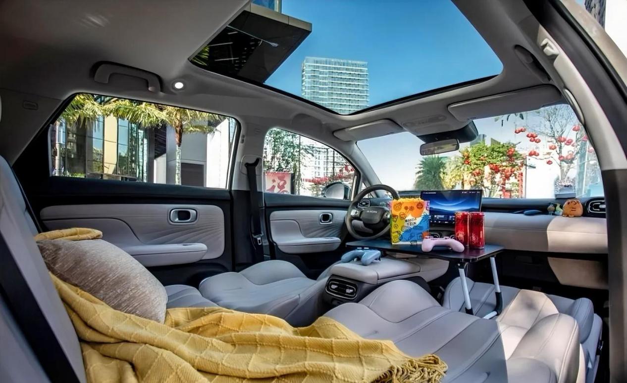 让我们先放下价格的因素,来看看埃安UT的产品力。首先是空间,对于一辆家用车来说,空间的重要性不言而喻。埃安UT的车身尺寸比同级别车型大了一圈,带来了更加宽敞舒适的乘坐空间。 尤其是后排空间,即使是身高1.8米的长腿乘客,也能轻松翘起二郎腿,完全不会感到局促。 440L的超大后备箱,更是满足了全家出行的需求。 无论是日常购物还是长途旅行,都能轻松装下各种行李物品。 官方数据显示,埃安UT的后排腿部空间达到了950mm,超过了许多B级车的水平。
