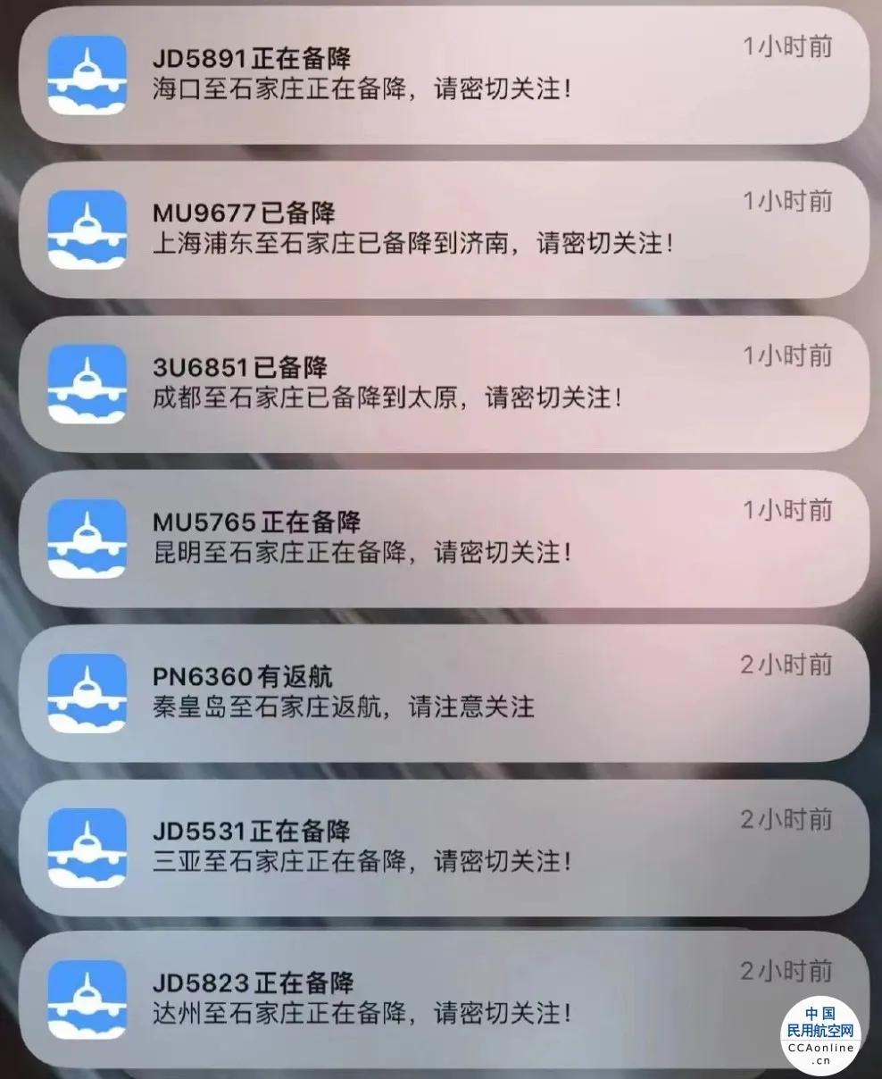 石家庄机场空中管制,大面积航班取消、备降或返航,这什么情况?