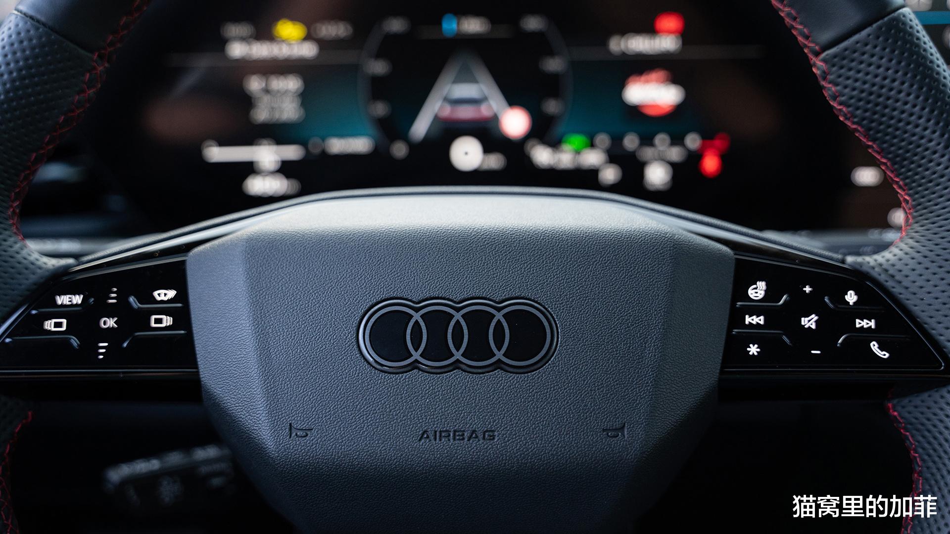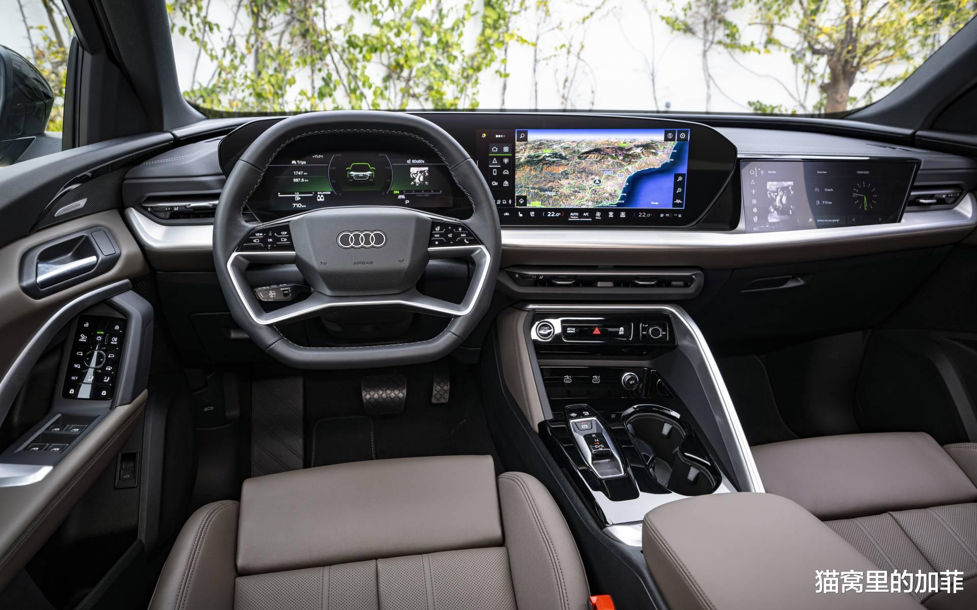 全新的奥迪家族内饰设计也是更加具有科技感,首先是偏向驾驶位的双联曲面大屏设计,11.9寸液晶仪表加上14.5寸中控大屏,而且副驾驶位也增加了10.9寸的娱乐屏。