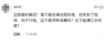 有位网友认为这就是和稀泥!释不够法律法规标准,但来到现场,他不付钱,这不是寻衅滋事吗?还不能请他去所里?