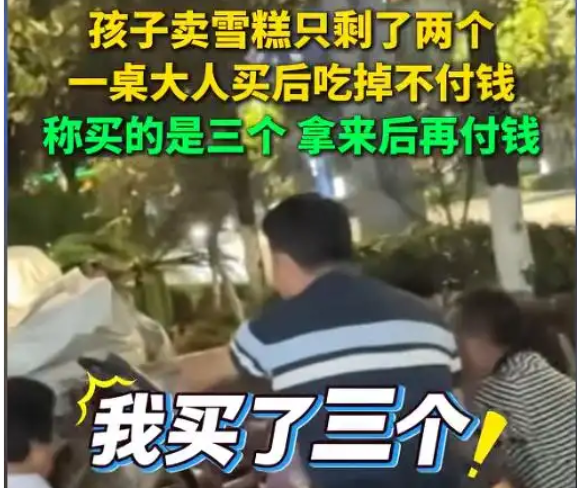 近日贵州瓮安有三位小学生在饭店周围卖雪糕和冰棒,在经过某一餐桌时,有几个成年人表示需要三个雪糕。然而此时孩子们看下箱子,却发现只剩下两个雪糕,故而只给了他们两个。然而这群成年人非要三个,还坚持要求三个小孩想办法。