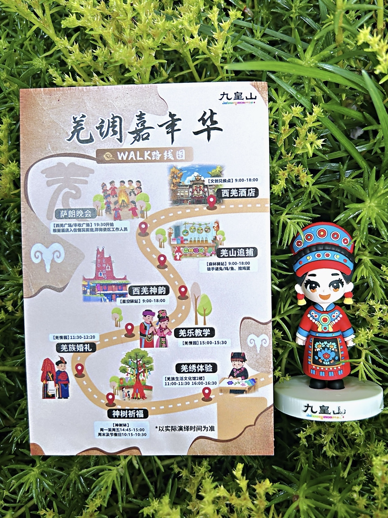 从6月开始,九皇山同步推出的羌调walk集章活动也在火热进行中。游客入园即可在游客中心“云中羌寨索道”入口处领取定制walk地图,开启充满惊喜的沉浸式文化探索之旅。