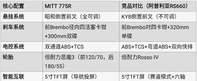 关于配置,MITT 775R的性价比值得一提,实乃越级堆料。硬件规格的高端设计与10万级车型相匹配,尤其适合那些预算有限但渴望性能的摩托车爱好者。必须指出的是,该车的电控系统相对简单,缺乏复杂的功能,如弯道ABS和快排系统,使得其在极限赛道表现上略显不足。