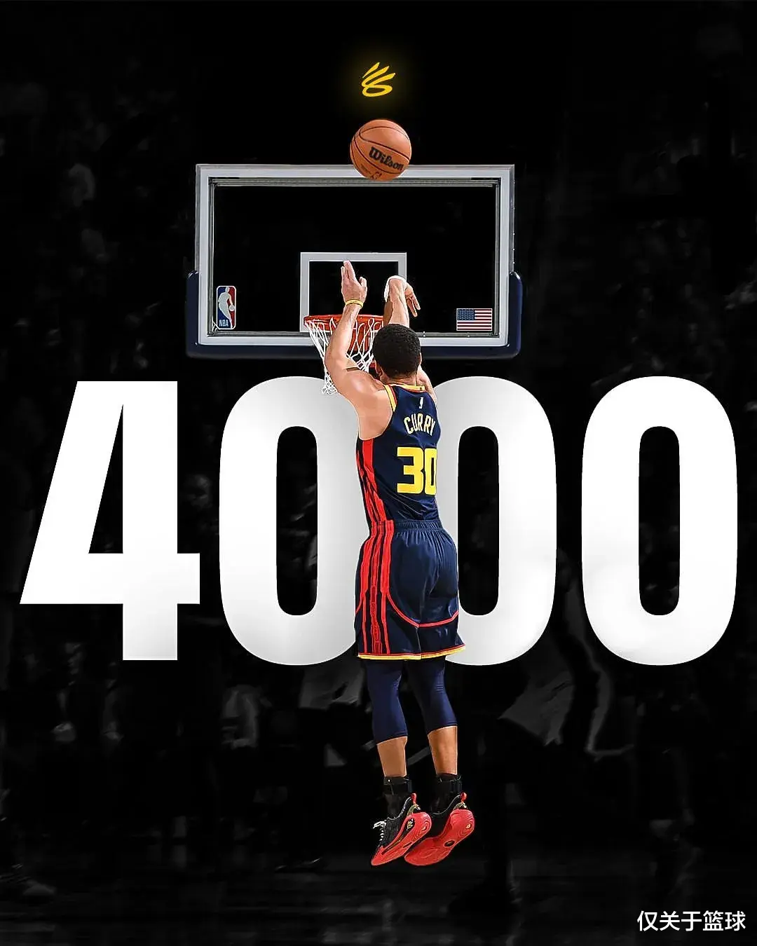 说回到库里,在37岁的生日夜,投进生涯的第4000记三分,双喜临门的剧情让这个里程碑之夜变得更加浪漫。和詹姆斯超过四万分的得分一样,库里的四千记三分,也会成为后人只能仰望的一个数字。