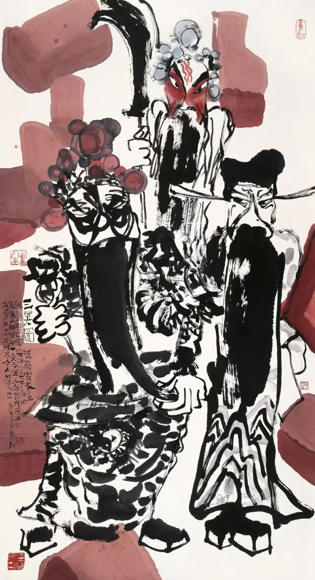 80 年代中期以后,他却由工笔而一改为水墨写意,这一创作上的转向应不是偶然的。一方面,画家天性豪爽,精细不苟的工笔画显然不能完全表达自我;而另一方面,日益宽松的社会环境则给予他表达个人情感和表现个性画风的机会,这为他的大写意戏曲人物画的创作提供了温床。他说:“在宣纸上任意涂抹,已成为一种‘谈道自娱’,原本是宣泄心想的习惯却成为调解心态放纵神经的享受。”他的这种创作心理在这一时期具有很强的代表性,艺术家们从履薄冰、临深渊的高度紧张的状态下解放出来,自由抒写显得那么可贵,而写意无疑是最好的画法之一。