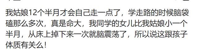 摔的巧了,我闺女从床上站着摔下来头朝下,没事,有一次睡觉从床上掉木地板胳膊摔断了