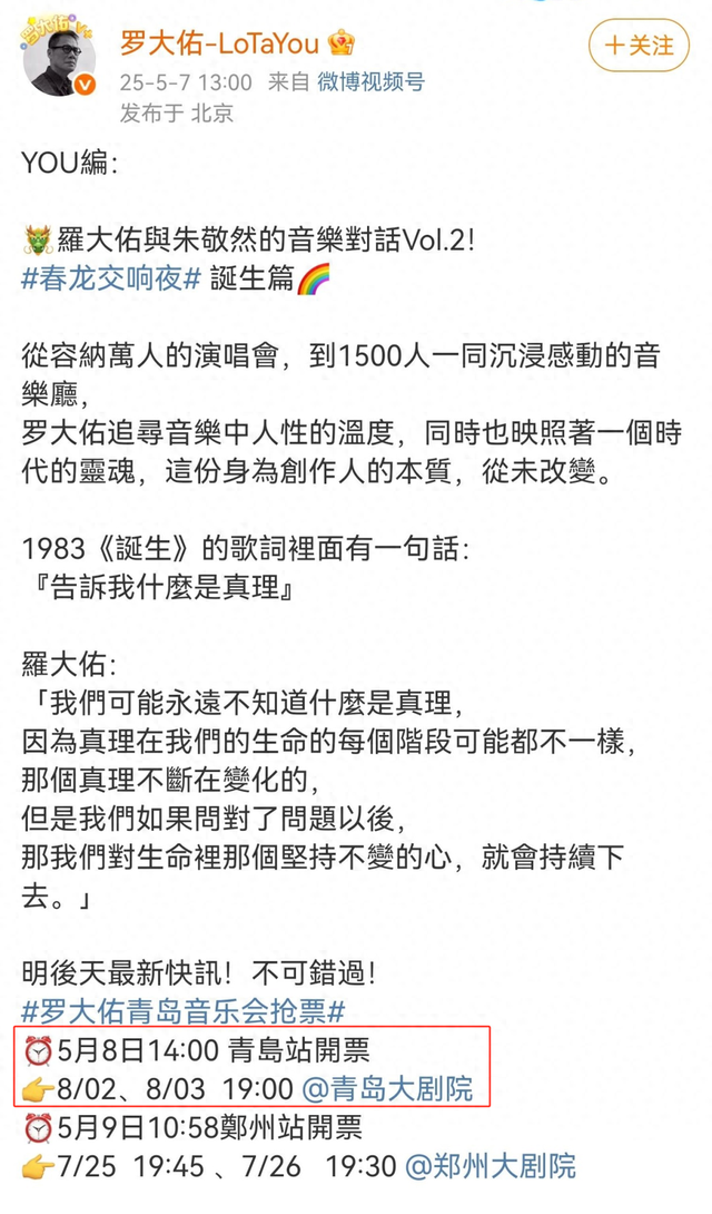 海报新闻微信公号 来源:青岛日报、@罗大佑-LoTaYou