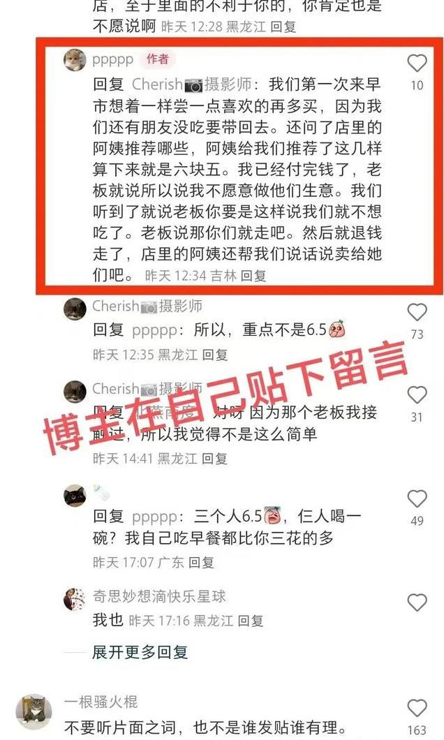 她开店的目的就是挣钱的,早餐店只有早上才会有客人,而在高峰期店里的位置却被仅花了6块5的三个人占着长达两个小时,搁谁谁能愿意呢?
