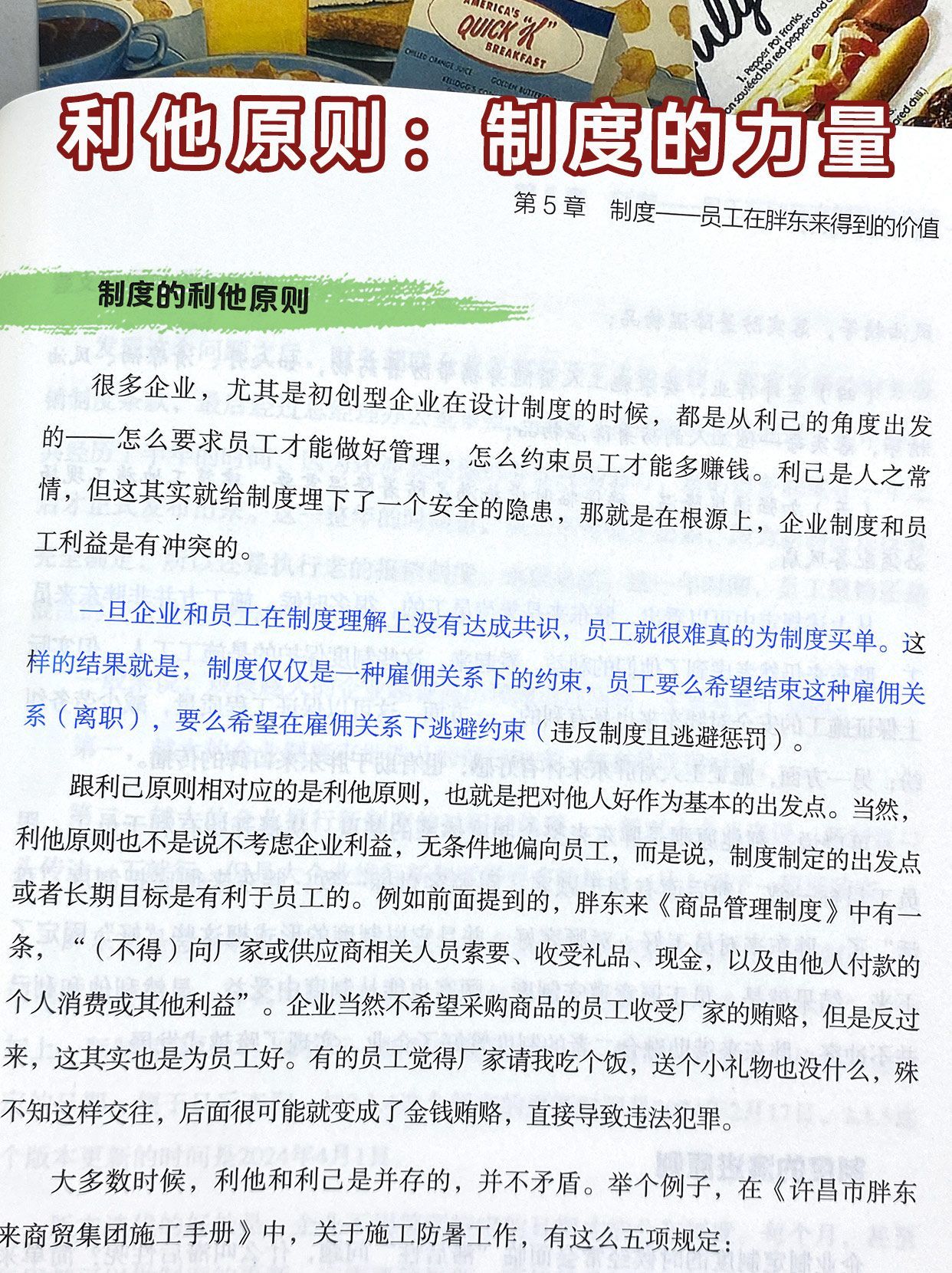 与之相对的"利他"设计理念,强调在制度根源构建共赢机制。以胖东来《商品管理制度》为例,"禁止收受供应商礼品"的条款看似约束员工行为,实则建立双重保护机制:既维护企业采购廉洁性,更通过制度屏障帮助员工规避商业贿赂风险。这种设计智慧在于,将企业健康发展与员工职业安全有机统一,使制度本身成为双方共同利益的守护者。