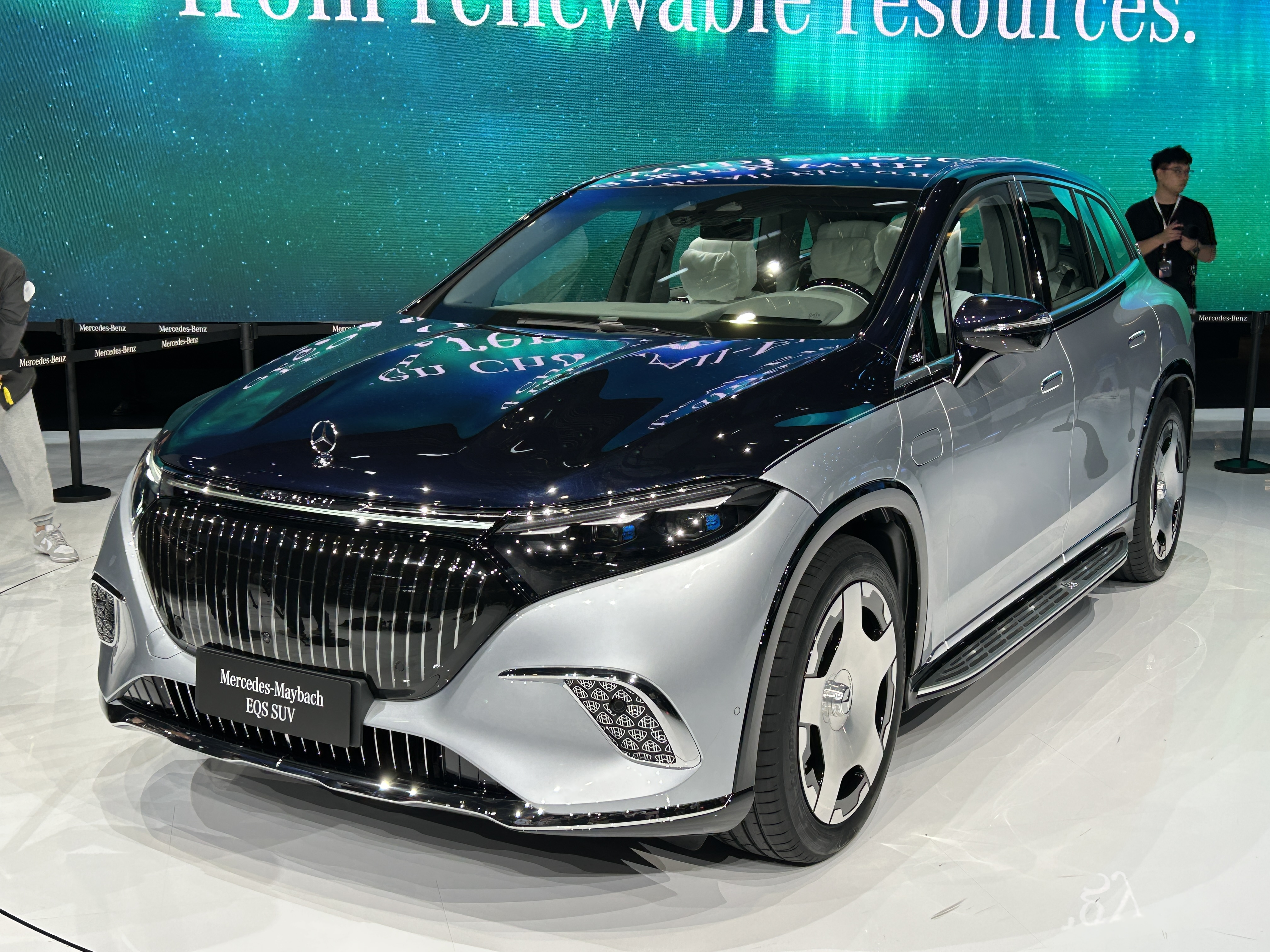梅赛德斯-迈巴赫首款纯电SUV车型迈巴赫EQS纯电SUV上海车展全球首发,标志性的直瀑式中网搭配经典的双色车身设计,奢华氛围非常浓郁。什么?你嫌弃迈巴赫EQS纯电SUV不够硬气?那就再看看它身旁的奔驰EQG概念车,它有着大G同款的威猛车身线条,又有着硬核的越野能力,谁说越野是油车的专利?让他们们瞧瞧电动大G!
