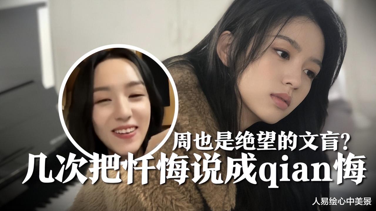 周也在直播当中四次把“忏悔”读成了“qian悔”。