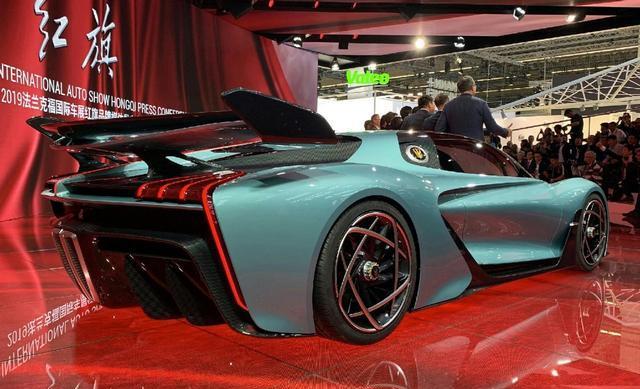 红旗S9车尾造型颠覆传统,配备大型双段式熏黑碳纤维尾翼与四段式LED尾灯,中置红色灯带延伸至鸭尾。中置双出排气精致拉长,两侧为夸张碳纤维扰流板设计。